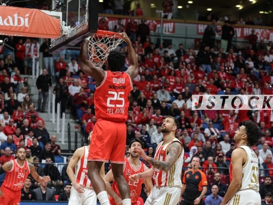 BKB-ISR EuroLeague Matchday 16 – Hapoel Tel Aviv (in red) vs. Red Star Belgrade (in white), December 16, 2025, Menora Mivtachim Arena, Tel Aviv, Israel.