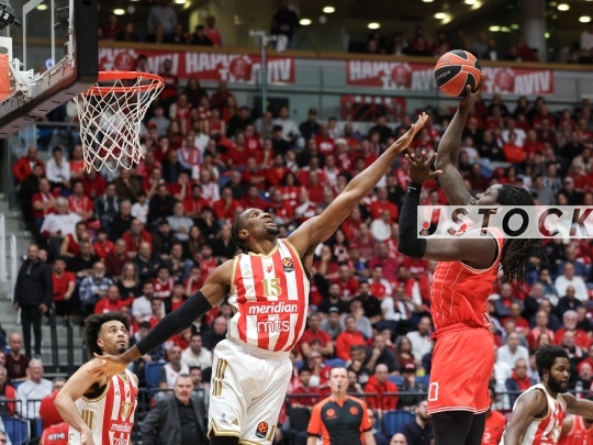 BKB-ISR EuroLeague Matchday 16 – Hapoel Tel Aviv (in red) vs. Red Star Belgrade (in white), December 16, 2025, Menora Mivtachim Arena, Tel Aviv, Israel.
