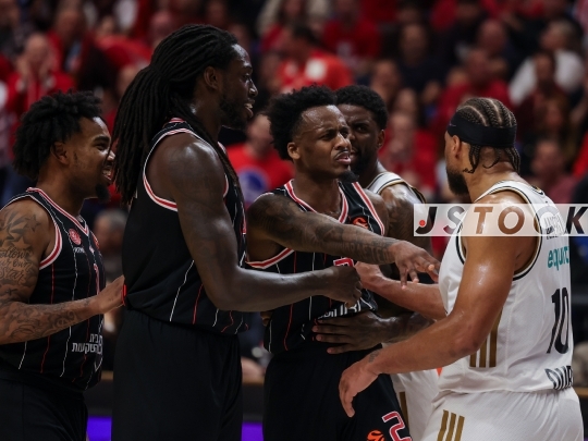 BKB-ISR EuroLeague Round 2 – Matchday 20 – Hapoel Tel Aviv (in black) vs. BC Dubai (in white), January 06, 2026, Menora Mivtachim Arena (Yad Eliyahu), Tel Aviv, Israel.