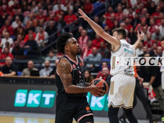 BKB-ISR EuroLeague Round 2 – Matchday 20 – Hapoel Tel Aviv (in black) vs. BC Dubai (in white), January 06, 2026, Menora Mivtachim Arena (Yad Eliyahu), Tel Aviv, Israel.