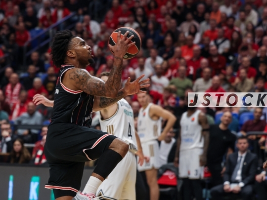 BKB-ISR EuroLeague Round 2 – Matchday 20 – Hapoel Tel Aviv (in black) vs. BC Dubai (in white), January 06, 2026, Menora Mivtachim Arena (Yad Eliyahu), Tel Aviv, Israel.