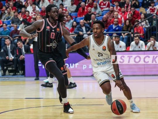 BKB-ISR EuroLeague Round 2 – Matchday 20 – Hapoel Tel Aviv (in black) vs. BC Dubai (in white), January 06, 2026, Menora Mivtachim Arena (Yad Eliyahu), Tel Aviv, Israel.