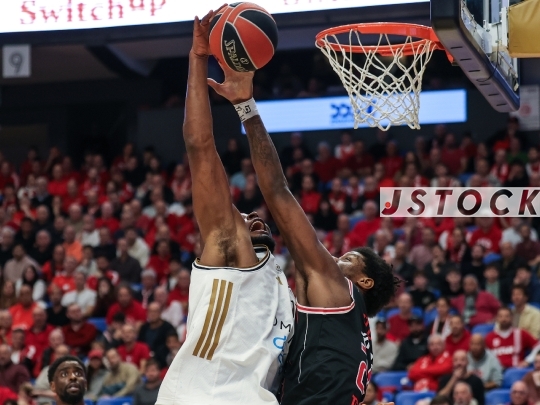 BKB-ISR EuroLeague Round 2 – Matchday 20 – Hapoel Tel Aviv (in black) vs. BC Dubai (in white), January 06, 2026, Menora Mivtachim Arena (Yad Eliyahu), Tel Aviv, Israel.