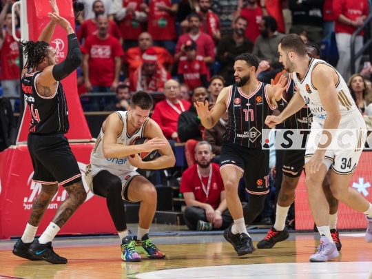 BKB-ISR EuroLeague Round 2 – Matchday 20 – Hapoel Tel Aviv (in black) vs. BC Dubai (in white), January 06, 2026, Menora Mivtachim Arena (Yad Eliyahu), Tel Aviv, Israel.