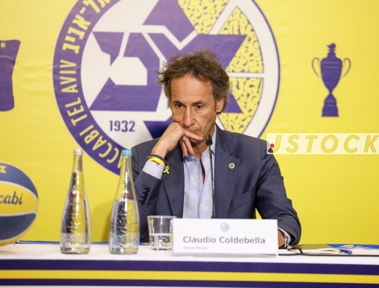 BKB-ISR Israeli Basketball Premier League – Press conference presenting Claudio Coldebella as the new Sporting Director of Maccabi Tel Aviv. Several fans protested outside the press conference against the club's conduct, July 08, 2025, Yad Eliyahu (Menora Mivtachim Arena), Tel Aviv, Israel.