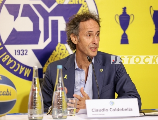 BKB-ISR Israeli Basketball Premier League – Press conference presenting Claudio Coldebella as the new Sporting Director of Maccabi Tel Aviv. Several fans protested outside the press conference against the club's conduct, July 08, 2025, Yad Eliyahu (Menora Mivtachim Arena), Tel Aviv, Israel.
