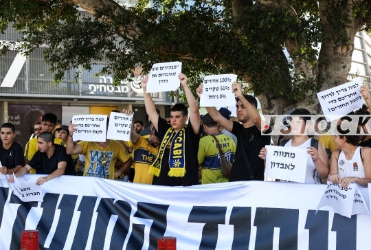 Israel Sport Basketball Maccabi Tel Aviv Press Conference Claudio Coldebella Tel Aviv Yad Eliyahu Menora Mivtachim Arena Protests