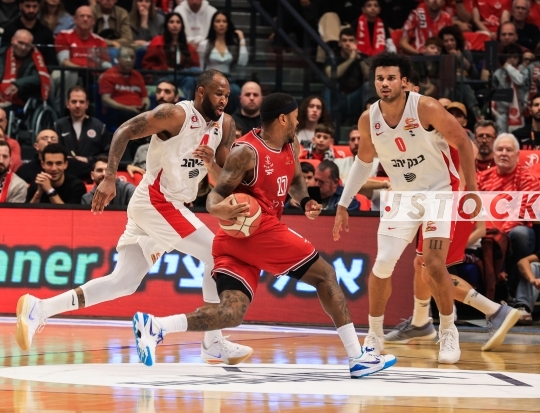 BKB-ISR Premier League Matchday 1 – Hapoel Tel Aviv (in red) vs. Hapoel Jerusalem (in white), January 11, 2025, Menora Mivtachim Arena, Tel Aviv, Israel.
