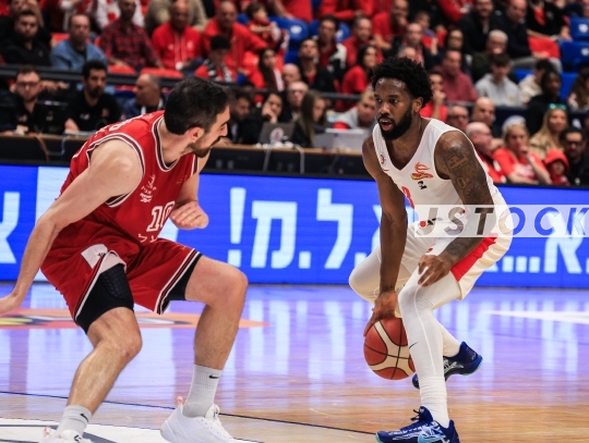 BKB-ISR Premier League Matchday 1 – Hapoel Tel Aviv (in red) vs. Hapoel Jerusalem (in white), January 11, 2025, Menora Mivtachim Arena, Tel Aviv, Israel.