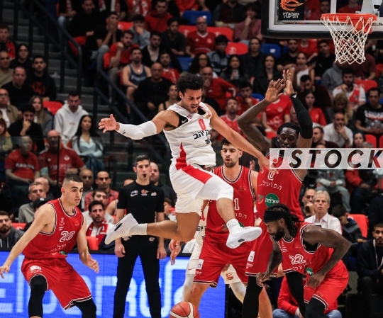BKB-ISR Premier League Matchday 1 – Hapoel Tel Aviv (in red) vs. Hapoel Jerusalem (in white), January 11, 2025, Menora Mivtachim Arena, Tel Aviv, Israel.