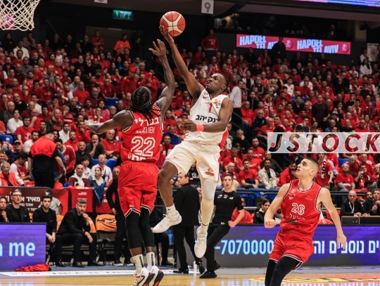 BKB-ISR Premier League Matchday 1 – Hapoel Tel Aviv (in red) vs. Hapoel Jerusalem (in white), January 11, 2025, Menora Mivtachim Arena, Tel Aviv, Israel.