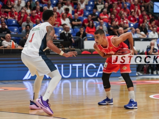 BKB-ISR Winner Cup – Hapoel Tel Aviv (in red) vs. Ness Ziona (in white), September 13, 2025, Menora Mivtachim Arena, Tel Aviv, Israel.