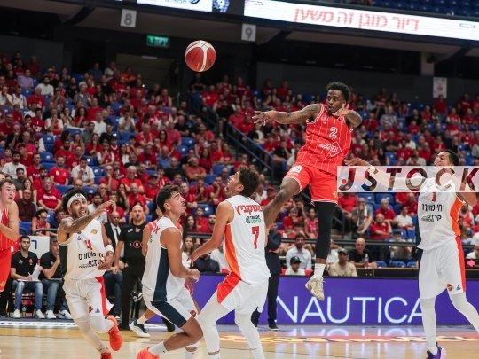 BKB-ISR Winner Cup – Hapoel Tel Aviv (in red) vs. Ness Ziona (in white), September 13, 2025, Menora Mivtachim Arena, Tel Aviv, Israel.