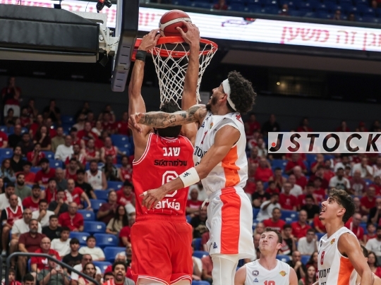 BKB-ISR Winner Cup – Hapoel Tel Aviv (in red) vs. Ness Ziona (in white), September 13, 2025, Menora Mivtachim Arena, Tel Aviv, Israel.