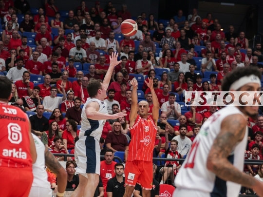 BKB-ISR Winner Cup – Hapoel Tel Aviv (in red) vs. Ness Ziona (in white), September 13, 2025, Menora Mivtachim Arena, Tel Aviv, Israel.