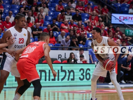 BKB-ISR Winner Cup – Hapoel Tel Aviv (in red) vs. Ness Ziona (in white), September 13, 2025, Menora Mivtachim Arena, Tel Aviv, Israel.
