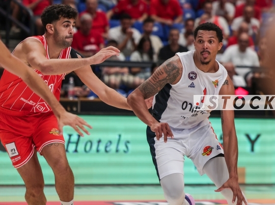 BKB-ISR Winner Cup – Hapoel Tel Aviv (in red) vs. Ness Ziona (in white), September 13, 2025, Menora Mivtachim Arena, Tel Aviv, Israel.