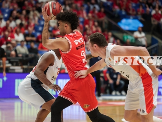 BKB-ISR Winner Cup – Hapoel Tel Aviv (in red) vs. Ness Ziona (in white), September 13, 2025, Menora Mivtachim Arena, Tel Aviv, Israel.