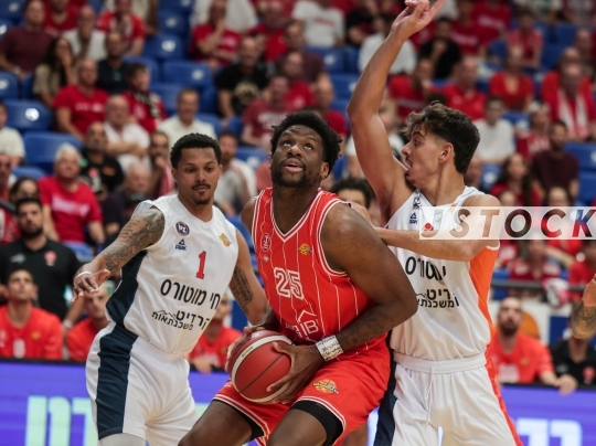 BKB-ISR Winner Cup – Hapoel Tel Aviv (in red) vs. Ness Ziona (in white), September 13, 2025, Menora Mivtachim Arena, Tel Aviv, Israel.