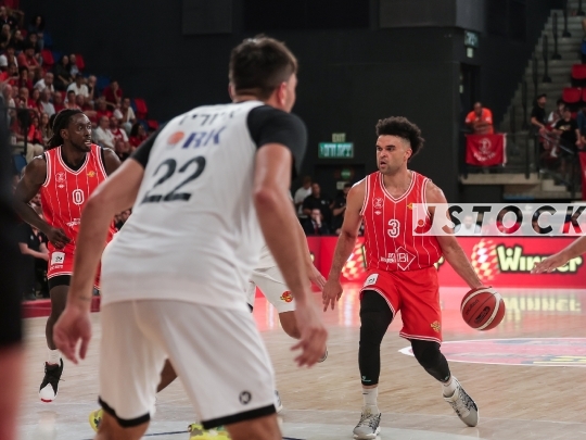 BKB-ISR Winner Cup Quarterfinal – Hapoel Tel Aviv (in red) vs. Hapoel Be'er Sheva (in white), September 25, 2025, Shlomo Group Arena’ Tel Aviv, Israel.