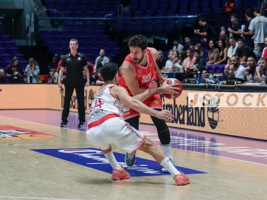 BKB-ISR Winner Cup Semifinal – Hapoel Tel Aviv (in red) vs. Hapoel HaEmek (in white), September 27, 2025, Menora Mivtachim, Tel Aviv, Israel.