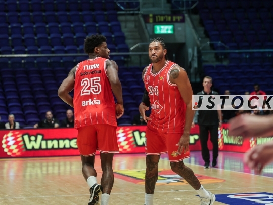 BKB-ISR Winner Cup Semifinal – Hapoel Tel Aviv (in red) vs. Hapoel HaEmek (in white), September 27, 2025, Menora Mivtachim, Tel Aviv, Israel.