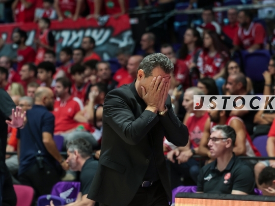 BKB-ISR Winner Cup Semifinal – Hapoel Tel Aviv (in red) vs. Hapoel HaEmek (in white), September 27, 2025, Menora Mivtachim, Tel Aviv, Israel.