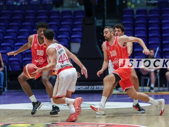 BKB-ISR Winner Cup Semifinal – Hapoel Tel Aviv (in red) vs. Hapoel HaEmek (in white), September 27, 2025, Menora Mivtachim, Tel Aviv, Israel.