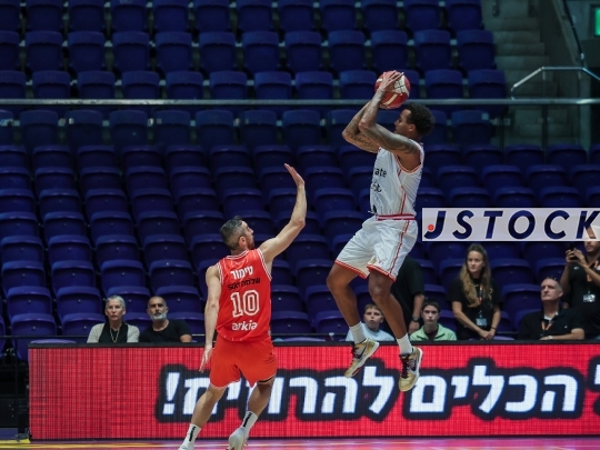 BKB-ISR Winner Cup Semifinal – Hapoel Tel Aviv (in red) vs. Hapoel HaEmek (in white), September 27, 2025, Menora Mivtachim, Tel Aviv, Israel.