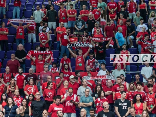 BKB-ISR Winner Cup Semifinal – Hapoel Tel Aviv (in red) vs. Hapoel HaEmek (in white), September 27, 2025, Menora Mivtachim, Tel Aviv, Israel.
