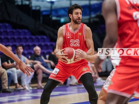 BKB-ISR Winner Cup Semifinal – Hapoel Tel Aviv (in red) vs. Hapoel HaEmek (in white), September 27, 2025, Menora Mivtachim, Tel Aviv, Israel.