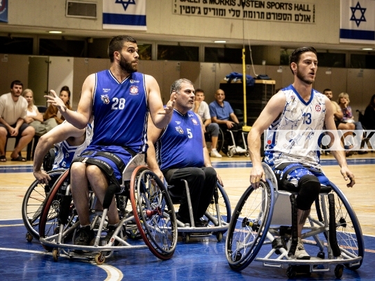 May 5, 2025 Tel Aviv. Beit Halochem Tel Aviv in white vs. Hadera Sharks in blue Beit Halochem Haifa, Tel Aviv, Israel (Photo by Shaul Greenfeld /JStock)