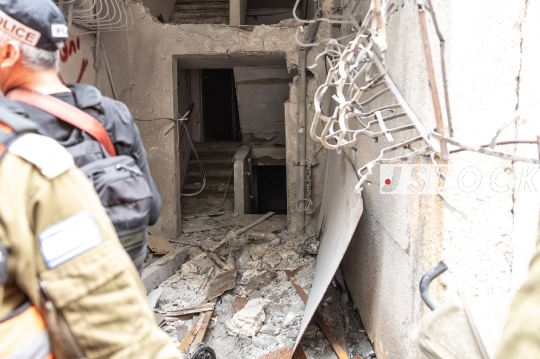 Day 33 of the war between Israel, the USA, and Iran. An Iranian cluster munition missile launched at the Gush Dan region resulted in several impact sites. The most severe hit occurred in Bnei Brak, causing extensive structural damage. Authorities reported multiple casualties: an 11-year-old girl in critical condition, a 13-year-old boy in serious condition, his mother in moderate condition, and 11 others with minor injuries, April 01, 2026, Bnei Brak, Israel.