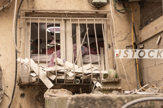 Day 33 of the war between Israel, the USA, and Iran. An Iranian cluster munition missile launched at the Gush Dan region resulted in several impact sites. The most severe hit occurred in Bnei Brak, causing extensive structural damage. Authorities reported multiple casualties: an 11-year-old girl in critical condition, a 13-year-old boy in serious condition, his mother in moderate condition, and 11 others with minor injuries, April 01, 2026, Bnei Brak, Israel.