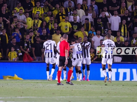 UEFA Europa Conference League, Second Qualifying Round, Second Leg Beitar Jerusalem in yellow and black vs. PAOK FC in white and black August 3, 2023 Jerusalem, Israel.(Photo by Shaul Greenfeld / JStock)