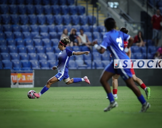 FBL-ISR Athena Cup Group Stage Matchday 3 – Hapoel Petah Tikva (in blue) vs. Hapoel Tel Aviv (in red), August 29, 2024, HaMoshava Stadium, Petah Tikva, Israel.