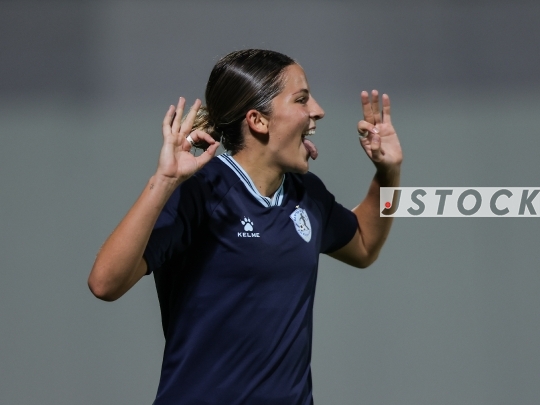 FBL-ISR Athena Cup Group Stage Matchday 3 – MS Kiryat Gat (in blue) vs. AS Ramat HaSharon (in white), August 27, 2025, Toto Stadium Bat Yam, Bat Yam, Israel.