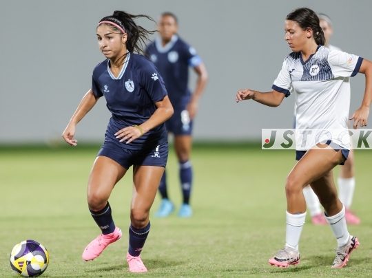 FBL-ISR Athena Cup Group Stage Matchday 3 – MS Kiryat Gat (in blue) vs. AS Ramat HaSharon (in white), August 27, 2025, Toto Stadium Bat Yam, Bat Yam, Israel.