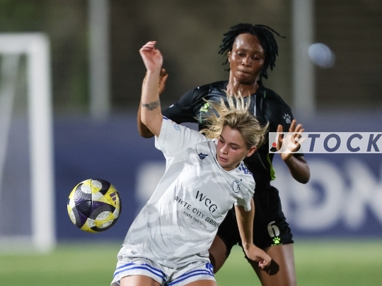 FBL-ISR Athena Cup Matchday 1 – Maccabi ASA Tel Aviv (in white) vs. Hapoel Ra'anana (in black), August 16, 2025, Kiryat Shalom Stadium, Tel Aviv, Israel. Photo by Shaul Greenfeld / JStock.