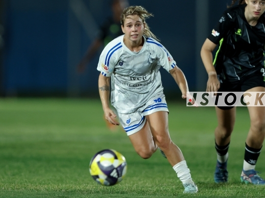 FBL-ISR Athena Cup Matchday 1 – Maccabi ASA Tel Aviv (in white) vs. Hapoel Ra'anana (in black), August 16, 2025, Kiryat Shalom Stadium, Tel Aviv, Israel. Photo by Shaul Greenfeld / JStock.