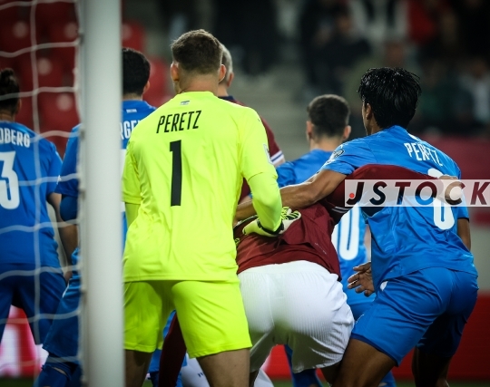 FBL-ISR FIFA World Cup 2026 Qualifiers – Israel (in blue) vs. Norway (in red and white), March 25, 2025, Nagyerdei Stadion, Debrecen, Hungary.