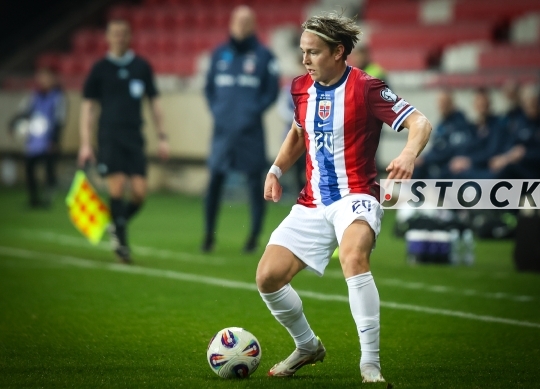 FBL-ISR FIFA World Cup 2026 Qualifiers – Israel (in blue) vs. Norway (in red and white), March 25, 2025, Nagyerdei Stadion, Debrecen, Hungary.