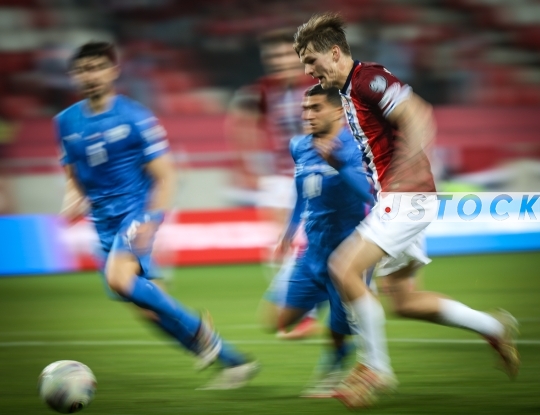 FBL-ISR FIFA World Cup 2026 Qualifiers – Israel (in blue) vs. Norway (in red and white), March 25, 2025, Nagyerdei Stadion, Debrecen, Hungary.