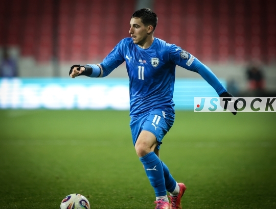 FBL-ISR FIFA World Cup 2026 Qualifiers – Israel (in blue) vs. Norway (in red and white), March 25, 2025, Nagyerdei Stadion, Debrecen, Hungary.