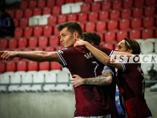 FBL-ISR FIFA World Cup 2026 Qualifiers – Israel (in blue) vs. Norway (in red and white), March 25, 2025, Nagyerdei Stadion, Debrecen, Hungary.