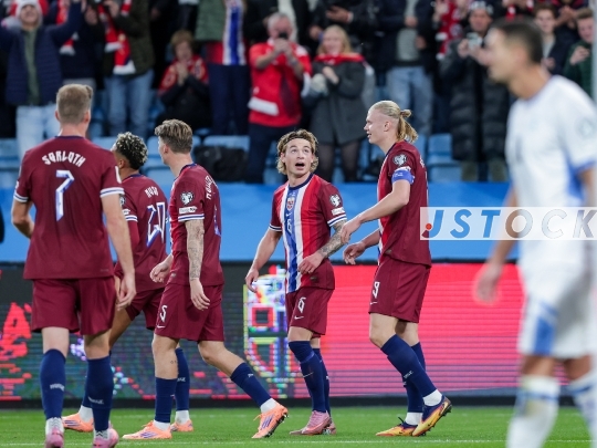 FBL-ISR FIFA World Cup 2026 Qualifiers – Norway (in red) vs. Israel (in white), October 11, 2025, Ullevaal Stadion, Oslo, Norway.