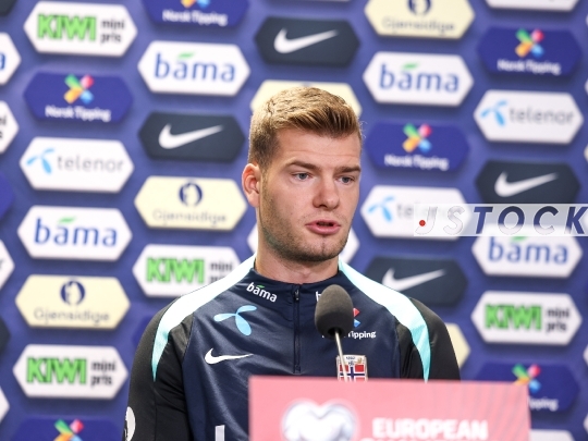 מסיבת עיתונאים נבחרת נורווגיה 10.10.25 Norway Sport Soccer Football FIFA World Cup 2026 Qualifiers Norway National Team Press Conference Training MD-1 Oslo Ullevaal Stadion Ståle Solbakken Alexander Sørloth Lise Klaveness Israel