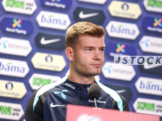 מסיבת עיתונאים נבחרת נורווגיה 10.10.25 Norway Sport Soccer Football FIFA World Cup 2026 Qualifiers Norway National Team Press Conference Training MD-1 Oslo Ullevaal Stadion Ståle Solbakken Alexander Sørloth Lise Klaveness Israel