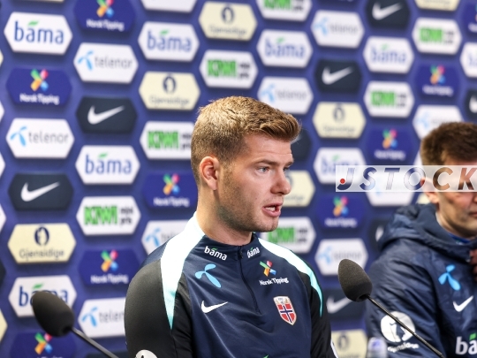 מסיבת עיתונאים נבחרת נורווגיה 10.10.25 Norway Sport Soccer Football FIFA World Cup 2026 Qualifiers Norway National Team Press Conference Training MD-1 Oslo Ullevaal Stadion Ståle Solbakken Alexander Sørloth Lise Klaveness Israel
