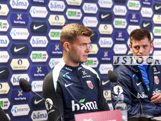 מסיבת עיתונאים נבחרת נורווגיה 10.10.25 Norway Sport Soccer Football FIFA World Cup 2026 Qualifiers Norway National Team Press Conference Training MD-1 Oslo Ullevaal Stadion Ståle Solbakken Alexander Sørloth Lise Klaveness Israel